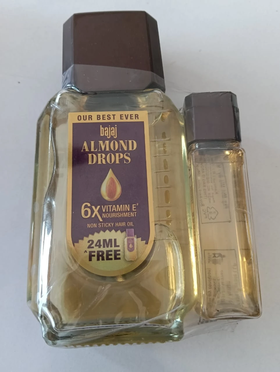 Bajaj Almond Drops Hair Oil is enriched with the goodness of almonds and 6X Vitamin E, specially formulated to nourish hair deeply and make it soft, shiny, and healthy. Its non-sticky and lightweight formula absorbs quickly without leaving a greasy feel.