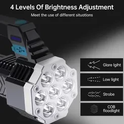 Outdoor Portable Camping Fishing Flashlight Multi-Mode High Brightness Lantern COB 7LED Hand Light USB Rechargeable Light with Side Light High Power LED Flashlight Powerful.