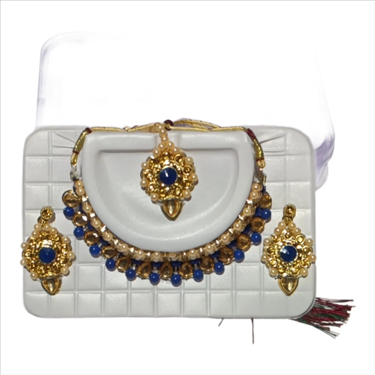 Bring out your inner queen with this Royal Ruby Bridal Necklace Set, beautifully crafted with red stones and golden detailing. The set includes a heavy choker necklace, matching earrings, and a maang tikka — perfect for weddings, receptions, and festive occasions. Designed to add a regal charm to your traditional attire, this jewelry set ensures you shine with elegance and grace at every celebration